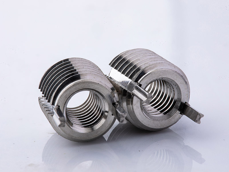 产品概述 插销螺套是一种内外都有螺纹,外螺纹上有四根或者两根插销键的特异紧固件,插销螺套装入攻丝后的底孔中,再把四根插销压入,起到强劲的紧固作用。插销螺套起初应用于航空航天领域,对较高扭矩要求的环境,表现出非常好的抗拉、抗扭性能。目前已广泛应用于航天、航空、仪器、轨道交通、液压、电动、化纤、纺织等对螺纹强度要求较高的产品上。插销螺套最基本的功能就是修复内螺纹和增强内螺纹。插销螺套作为一种螺纹修复手段,可以对被损螺纹进行快速有效地修复;应用在低强度的材料上,能极大地增强螺纹孔的强度。
