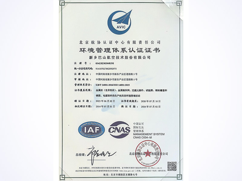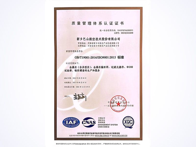 新乡巴山航空技术股份有限公司(代号:540厂,简称“巴山公司”)成立于1955年,作为“专精特新小巨人”企业与高新技术企业,公司拥有河南省企业技术中心及省级工程技术中心双认定,累计斩获专业授权专利80余项,主导或参与制定国家、军用及行业标准25项,涵盖金属网(GB/T5330、GB/T21648等)、试验筛(GB/T6003等)、钢丝螺套(GJB119系列、HB6200系列等)等核心领域标准体系。