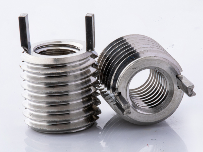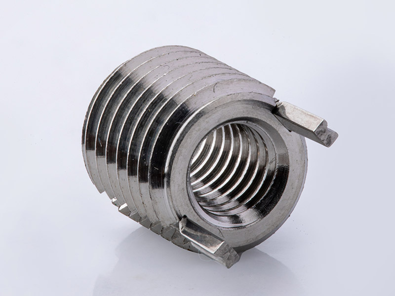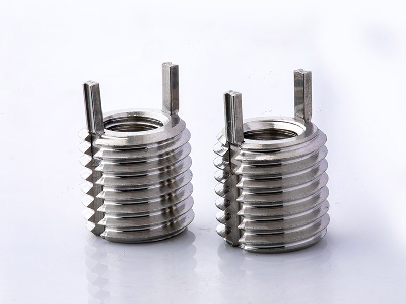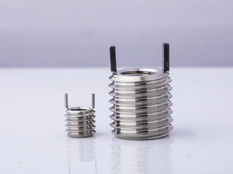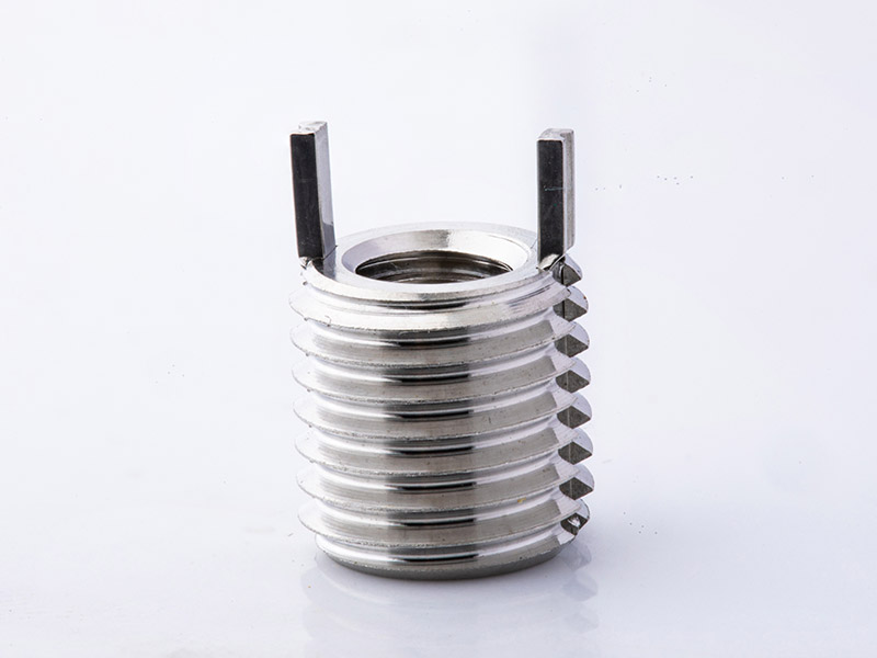 产品概述 插销螺套是一种内外都有螺纹,外螺纹上有四根或者两根插销键的特异紧固件,插销螺套装入攻丝后的底孔中,再把四根插销压入,起到强劲的紧固作用。插销螺套起初应用于航空航天领域,对较高扭矩要求的环境,表现出非常好的抗拉、抗扭性能。目前已广泛应用于航天、航空、仪器、轨道交通、液压、电动、化纤、纺织等对螺纹强度要求较高的产品上。插销螺套最基本的功能就是修复内螺纹和增强内螺纹。插销螺套作为一种螺纹修复手段,可以对被损螺纹进行快速有效地修复;应用在低强度的材料上,能极大地增强螺纹孔的强度。