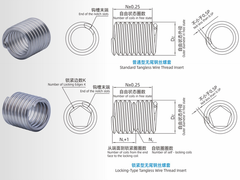 注:锁紧圈数及锁紧边数只适用锁紧型钢丝螺套