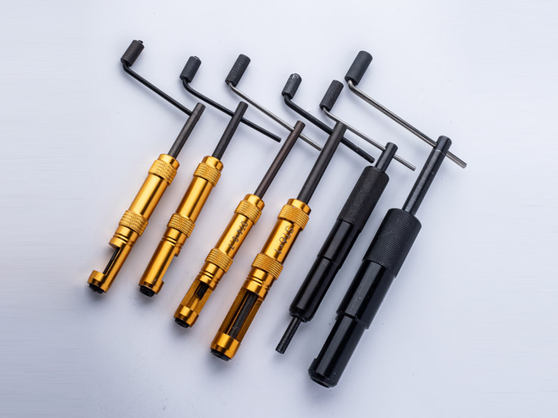 一般情况下可用手动安装扳手进行安装。将钢丝螺套放入安装扳手中,使螺套安装柄嵌入导杆,旋转手柄,使螺套在拉紧状态下沿螺纹旋入螺孔,确保螺套顶端低于工件表面 0.75–1.5P,预留空螺纹圈。少量安装或 M14×2 以上粗牙螺套也可采用“T”型开槽工具或简易螺纹头工具安装。注意勿对螺套安装柄施加过大轴向力,以避免“乱扣”。当在流水线或需批量快速安装时,可采用气动或电动半自动安装扳手,以获得高效率、稳定可靠的安装效果。安装完毕后应采用相应等级的塞规检查所形成的标准螺纹精度。